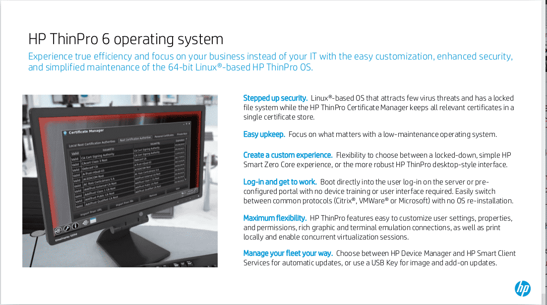 Thirteen page presentation for 2016 and HP t630 thin client announcement.